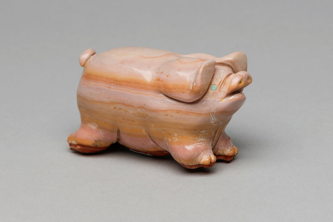 Stanton Hannaweeke is an established Zuni fetish carver who specializes in carving Zuni pig fetishes. Stanton's brother, Eddington Hannaweeke, is known for carving Zuni bear fetishes that have a comical twist. Stanton's father, Charles (d), was a Zuni jeweler, as was his uncle, Thomas, who is considered one of the finest Zuni Pueblo jewelers.