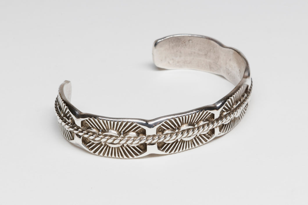 Hand Stamped BraceletNavajo Jewelrysterling silver5 3/8” around x 1 1/2” opening x 3/4” wide