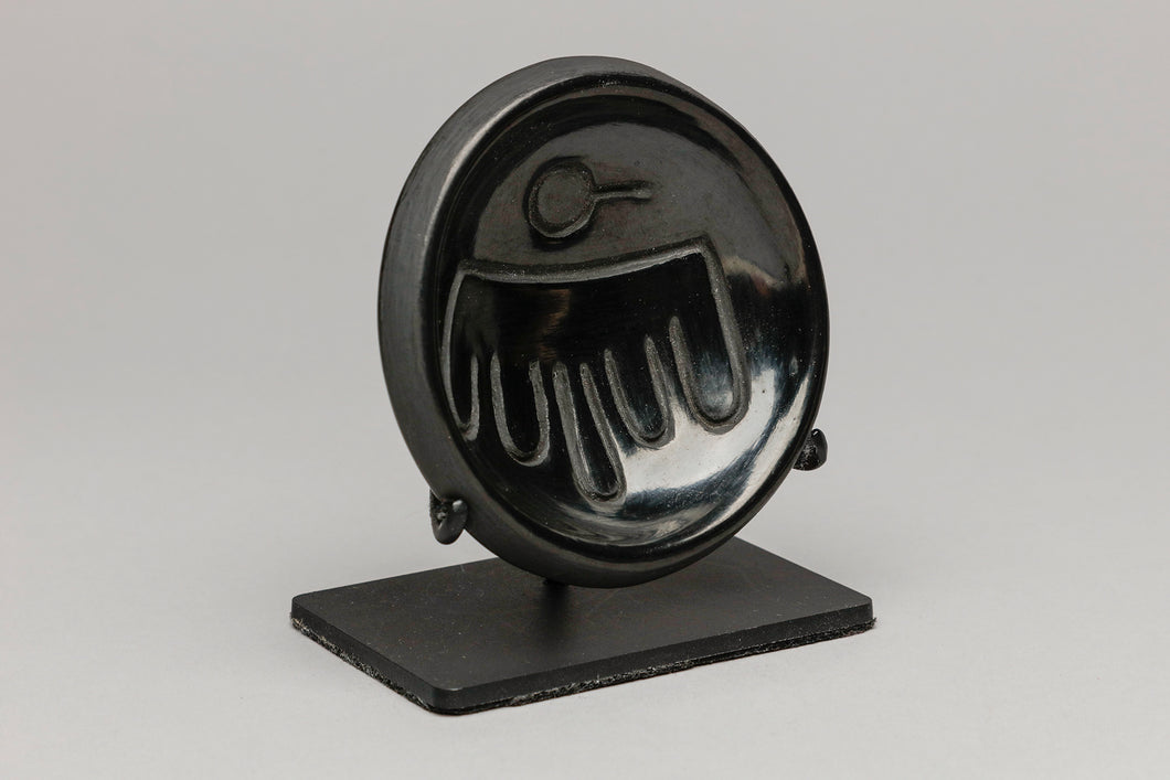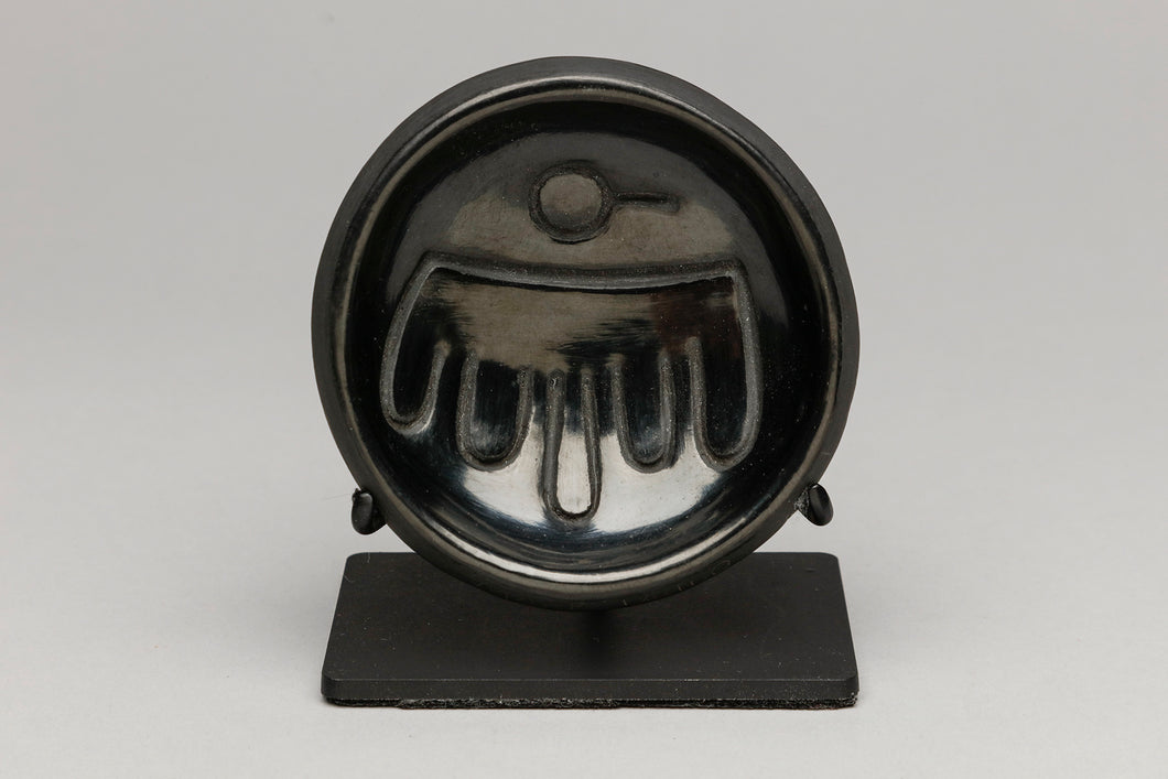 Miniature Bowl with Thunderbird DesignSanta Clara PotteryBlackware clay, stand included7/8” high x 3” diameter
