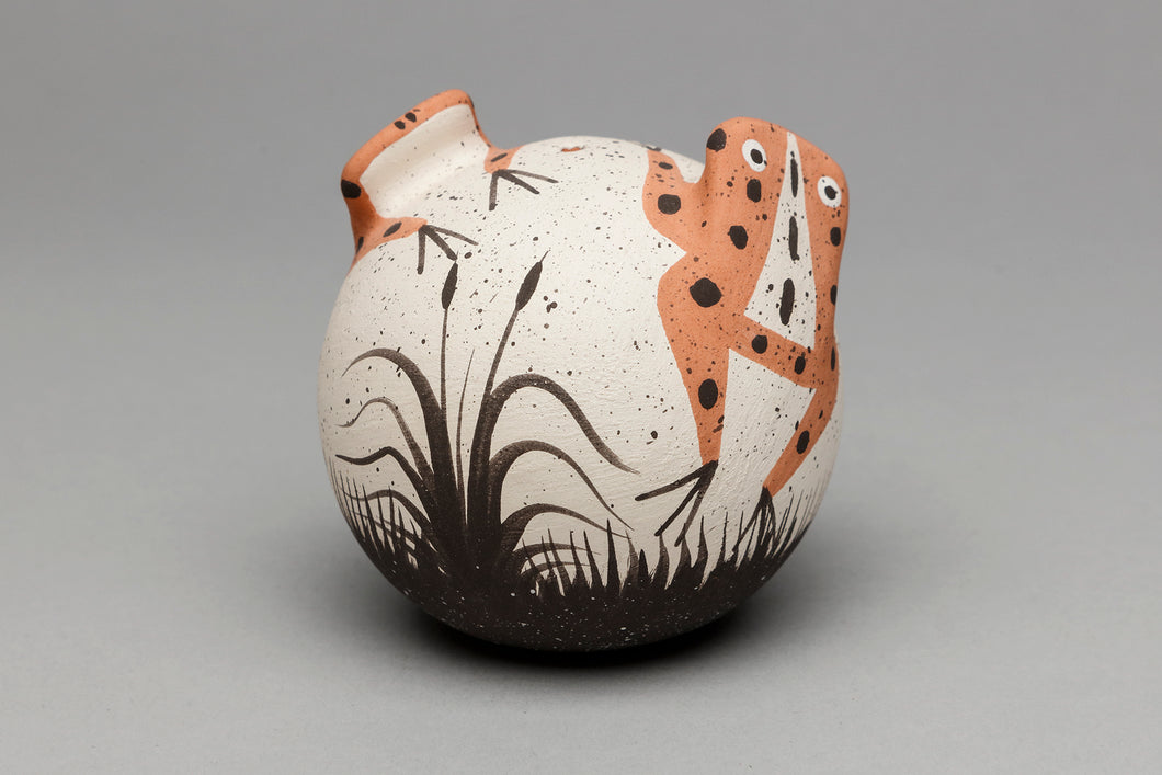 Seed Pot with Frogs and Cattails by Marcus Homer, Zuni Pueblo