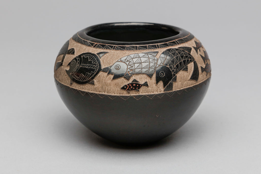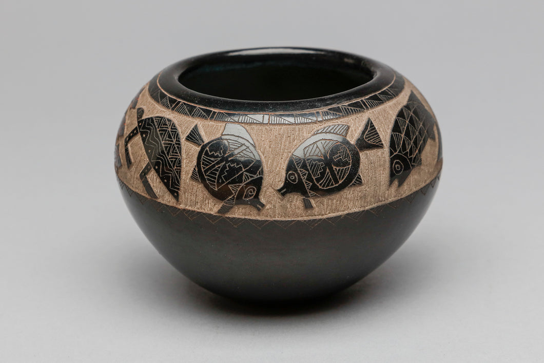 Bowl with Fish and Turtle Designs by Goldenrod, Santa Clara Pueblo