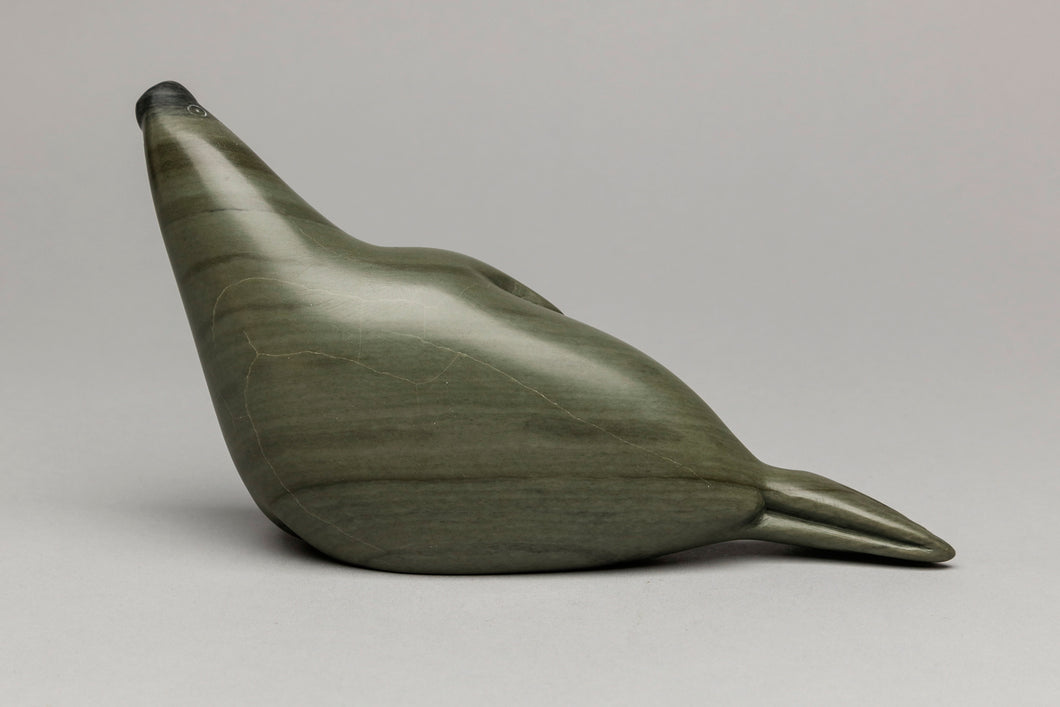 Elijah Kavik is an Inuit artist from Sanikiluaq, a remote community located on the Belcher Islands in southeastern Hudson Bay. He is known for his whimsical animal carvings—most often fish, but occasionally other traditional subjects—and works exclusively in soapstone, the primary material used by artists in the region.
