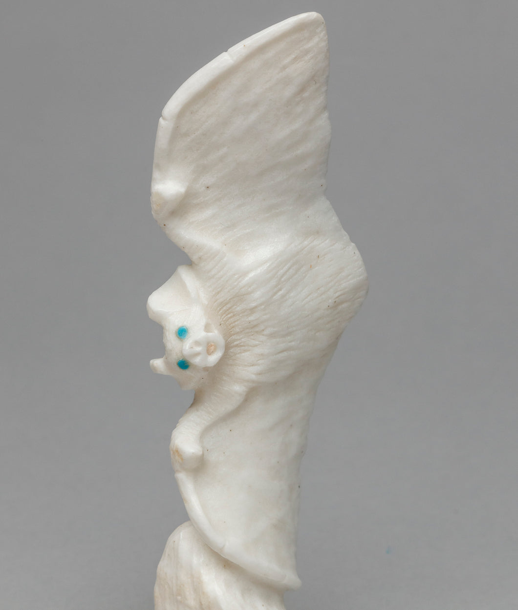 Bat Fetish Carving by Louis Maile Jr., Zuni Puebloantler, turquoise inlay5” high x 2” wide x 1 1/4” deep