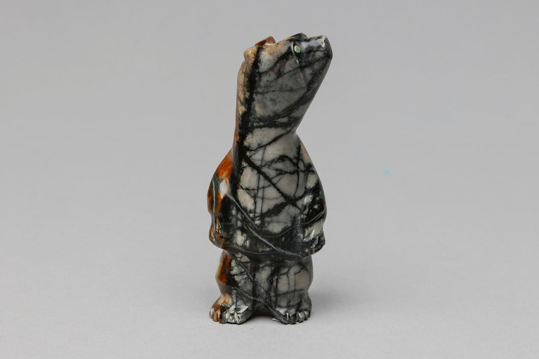 Standing Bear Fetish Carving by Andres Quam, Zuni PuebloPicasso marble, turquoise inlays2 1/4” high x 7/8” wide x 3/4” deep