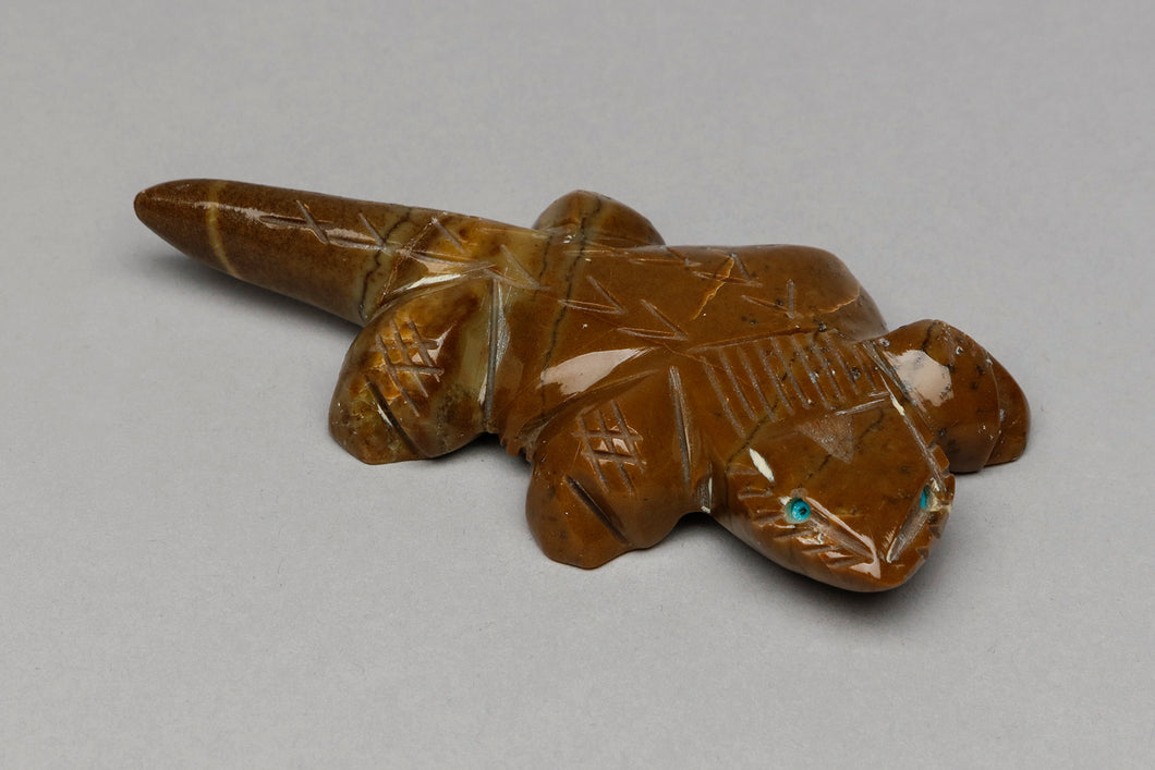 Large Lizard Fetish Carving by Justin Red Elk, Zuni PuebloPicasso marble, turquoise eyes1/2” high x 3 1/2” long x 2” wide$180